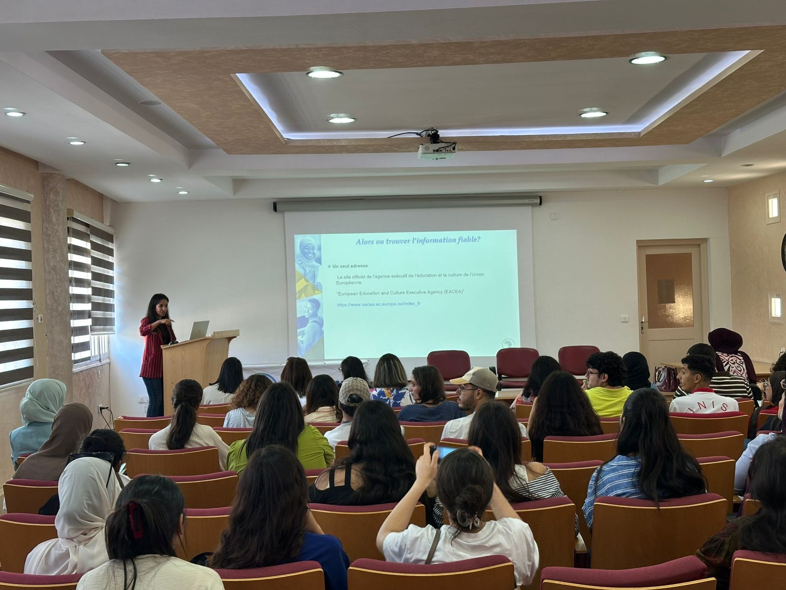 A panel discussion followed, providing participants with a comprehensive overview of the various Erasmus+ scholarship opportunities available to Tunisian students. The session also featured a presentation from EURAXESS Tunisia, highlighting its free services that support students, researchers, and academics in their international mobility and career development.